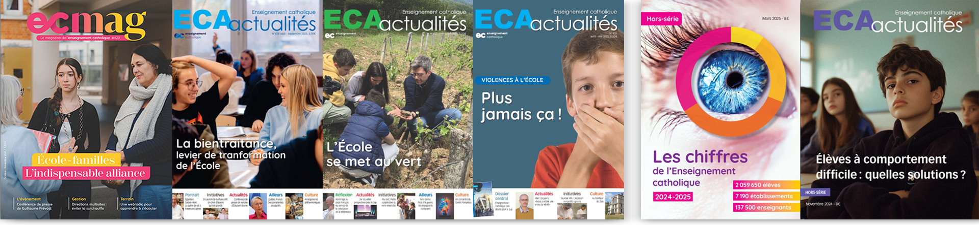 ECmag nouvelle formule du magazine de l'Enseignement catholique, analyse toujours plus les tendances sociétales, leur impact sur le monde scolaire. Et encore des décryptages de l'actualité éducative, des ressources, des retours d'expériances innovantes, des témoignages et des réflexions mais aussi une grande enquête thématique exclusive.